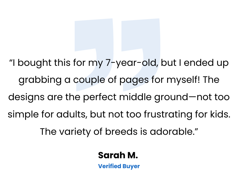 This collection features 28 unique, high-quality dog illustrations that make coloring a joy for everyone. Whether you’re a busy adult unwinding after a long day or a parent looking for a fun, creative activity to share with your kids, these hand-illustrated pages are perfect for all ages and skill levels.